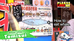 To gauge the public's response to the issue, I wore two sandwich boards which addressed commercial whaling in different ways. In Melbourne, the boards were designed to promote a new 'whaleburger' and in Tokyo they took the form of protest signs. The video presented here shows the sandwich boards as they move through Tsukiji fish market and Takeshita-dōri in Harajuku, Tokyo. The still images capture the sandwich boards in both Toyko and Melbourne.